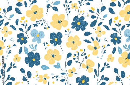 © Zaleman, Obraz premium Fabric printed with blue and yellow flowers.