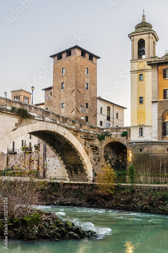 Obraz premium Fabricio Bridge (Ponte Fabricio), Tiber Island. Rome, Italy.