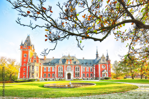 Obraz premium Fabulous autumn landscape with Plawniowice palace.