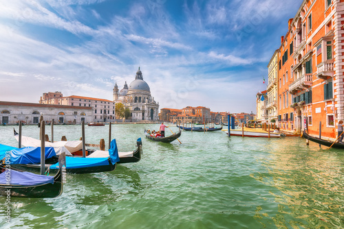 © pilat666, Fototapeta premium Fabulous morning cityscape of Venice with famous Canal Grande and Basilica di Santa Maria della Salute church.