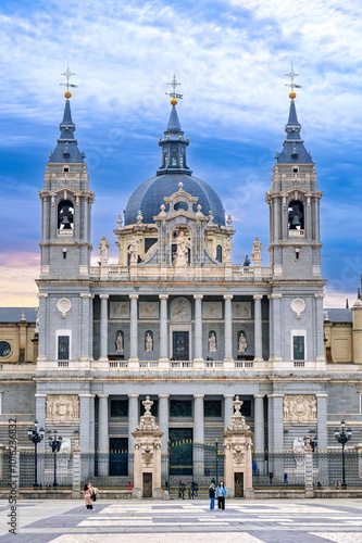 Obraz premium Facade and exterior architecture in the Almudena Cathedral, Madrid, Spain