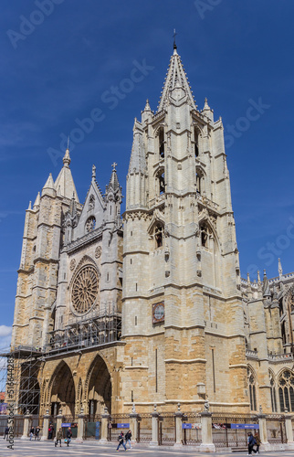 Fototapeta premium Facade and towers of the cathedral in Leon, Spain