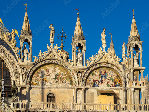 Naklejka premium Facade detail of the San Marcos Basilica with mosaic with scenes from the life of Christ, Venice