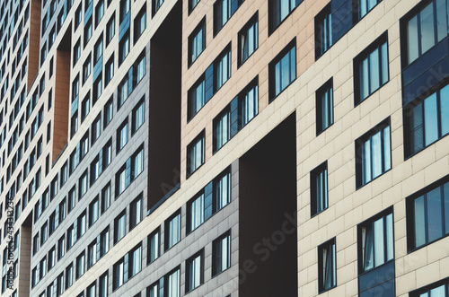 © Roman, Obraz premium Facade of a modern building.Background with rows of glass windows.
