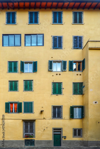 © Felix Tchvertkin, Fototapeta premium Facade of a traditional Italian residential building with multiple windows and shutters