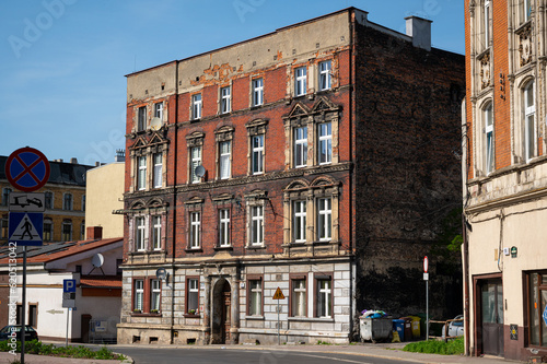 Naklejka premium Facade of an old brick house without advertising signs.