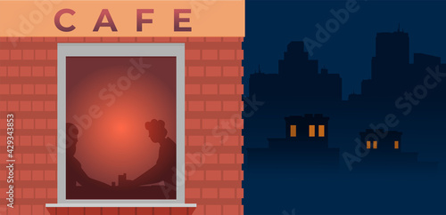 Obraz premium Facade of cafe flat vector. Illustration
