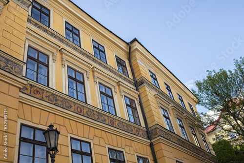 Fototapeta premium Facade of Fritz House in Banska Stiavnica.May 2023.