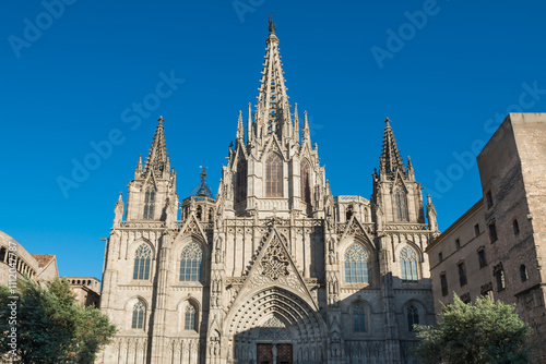 Fototapeta premium Facade of gothic Cathedral Of Barcelona in Spain