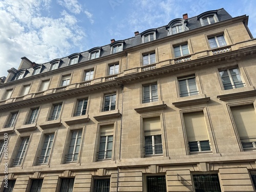 © Sunlight, Obraz premium Facade of high building with brick walls and big windows