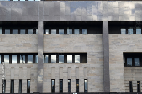 © eyepals, Obraz premium Facade of Modern Office Building with Stone and Metal Cladding