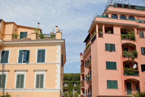 © aprilante, Fototapeta premium Facade of old house in Rome