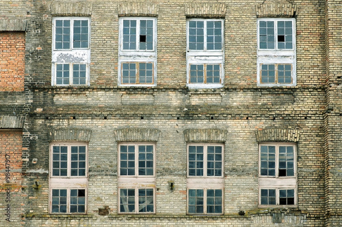 © struvictory, Fototapeta premium Facade of old industrial building of beige brick with windows.