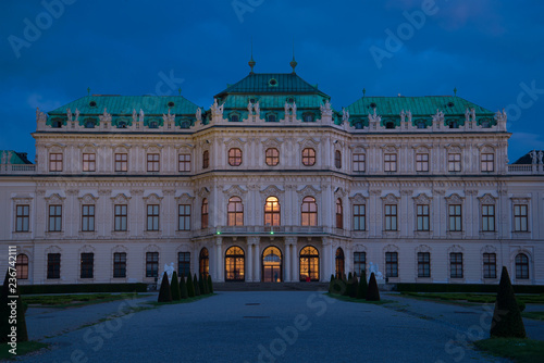 Fototapeta premium Facade of the Belvedere Palace in the April twilight. Vienna, Austria
