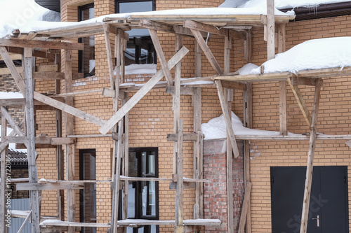 © novolodskiy, Obraz premium Facade of the house under construction.