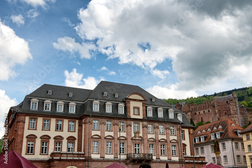 © XtravaganT, Fototapeta premium Facade of Town Hall with View of Heidelberg Castle