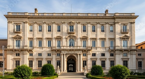 © Birly, Obraz premium Facade of Villa Borghese in Rome with refined architectural details