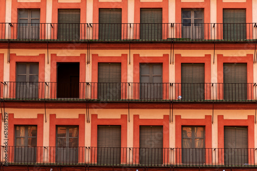 Fototapeta premium Facade with balconies of the Plaza de la Corredera in the city of Cordoba,Spain,
