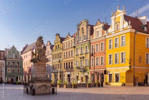 Naklejka premium Facades of old colorful houses on the Town Hall Square in Poznan