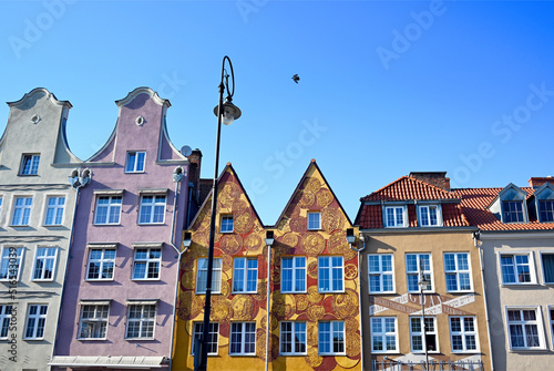 Naklejka premium facades of residential townhouses, Szeroka street, old town of Gdansk,...