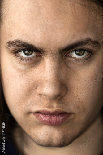 © Валентина Янковская, Fototapeta premium Face and eyes of a young handsome man with expressive eyes closeup