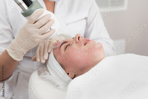 Obraz premium Face beauty treatment. Close-up of woman getting facial laser polishing and...