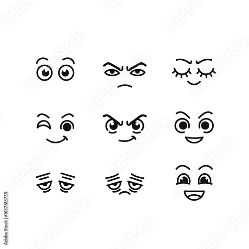 © Rahmanart, Obraz premium Face Expression Icon Set in Flat and Line Art Style Vector