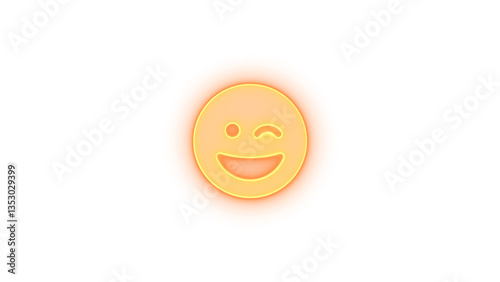 © Syqviro, Fototapeta premium Face grin wink icon brown color glowing neon on transparent background