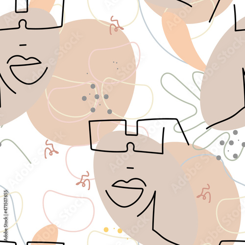 Fototapeta premium Face line pattern Abstract drawing seamless print