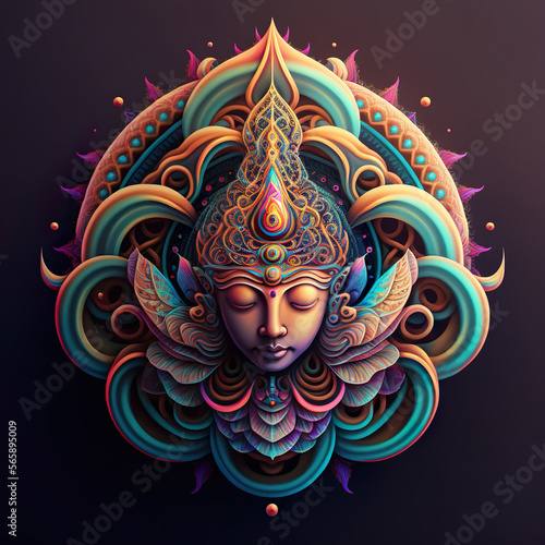 Naklejka premium Face of a spiritual Buddhist, tibetan holy symbol of faith in Buddha in nirvana enlightenment