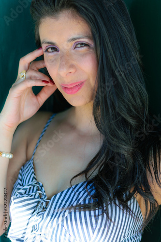 Fototapeta premium face of long black hair Colombian woman and very pretty woman