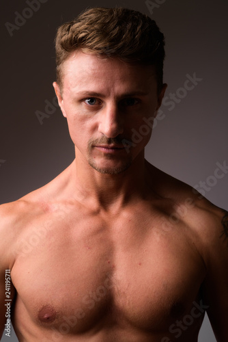 © Ranta Images, Fototapeta premium Face of muscular handsome bearded man shirtless