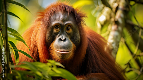 © Miry Haval, Fototapeta premium Face of orangutan. AI Generative.