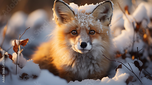 © Anna Puzatykh, Obraz premium Face of red fox dusted with snow in winter forest