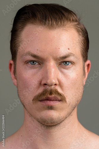 Obraz premium Face of young Caucasian man with mustache shirtless