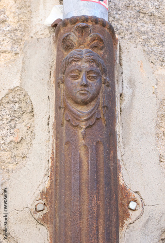 Naklejka premium Face on old forged metal gutter in Avila town