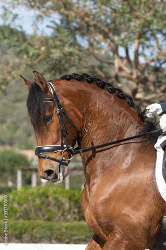 © Azahara, Obraz premium Face portrait of a spanish horse in a dressage competition