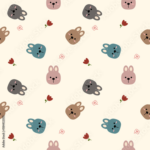 © Therdsak, Fototapeta premium Face rabbit cartoon so cute. On flower heart background. Pattern seamless vector illustration.