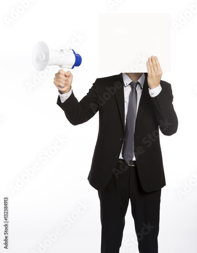 © HstrongART, Fototapeta premium faceless man holding megaphone