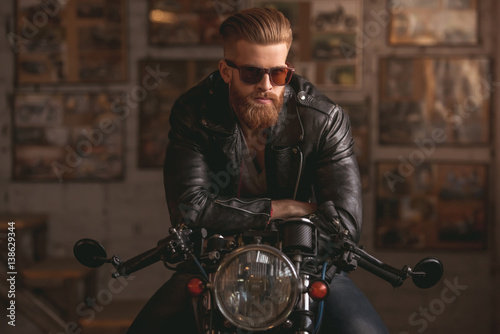 © VadimGuzhva, Fototapeta premium Facet w warsztacie motocyklowym