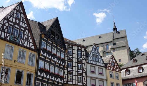 © Fotolyse, Fototapeta premium Fachwerkhäuser und Kapuzinerkloster in Cochem
