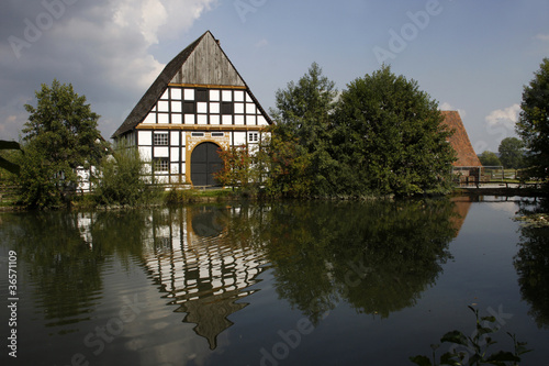 © Martina Berg, Obraz premium Fachwerkhaus an einem Teich