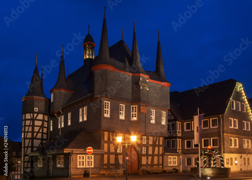 Fototapeta premium Fachwerkhaus mit Schiefer und türmen