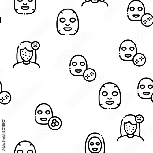 © PikePicture, Obraz premium Facial Mask Healthcare Seamless Pattern Vector Thin Line. Illustrations