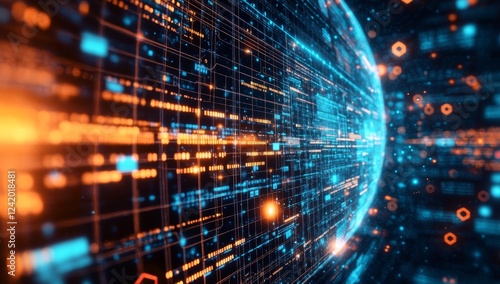 Fototapeta premium Facial recognition and access control illustrated through a modern high-tech...