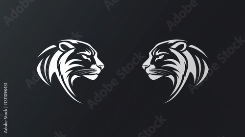 © Zeva, Obraz premium Facing Panthers, Dark Background, Graphic Design, Logo