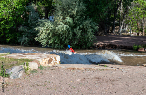 © Picunique, Naklejka premium Facing the rapids in a kayak keeping safety in mind