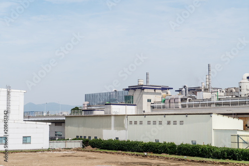 Obraz premium Factory building in the suburbs, industrial plant background