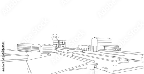 Obraz premium Factory buildings sketch drawings in perspective view, work office and...