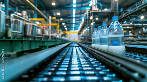 Naklejka premium factory, production line, conveyor belt, dairy, milk, bottle, plastic, beverage, food, manufacturing, industry, liquid, container, automated, assembly line, processing, bottling, carton, commercial, m